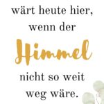 Der einfühlsame Spruch „Wir wissen, Ihr wärt heute hier, wenn der Himmel nicht so weit weg wäre“ drückt aus, was viele fühlen, aber oft schwer in Worte fassen können. Ideal zum Aufstellen auf einem kleinen Tisch mit Kerze oder Bilderrahmen – als stiller, würdevoller Gedenkplatz.