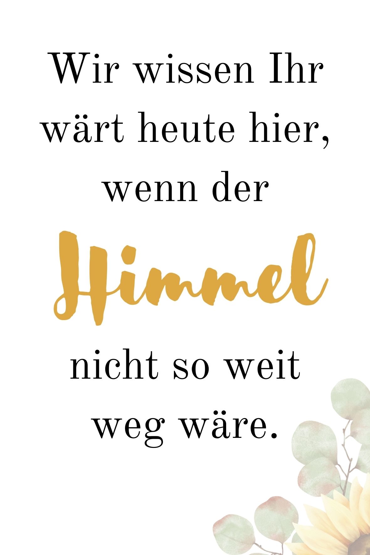 Hochzeit Erinnerungsschild Sonnenblumen – „Wir wissen, Ihr wärt heute hier…“